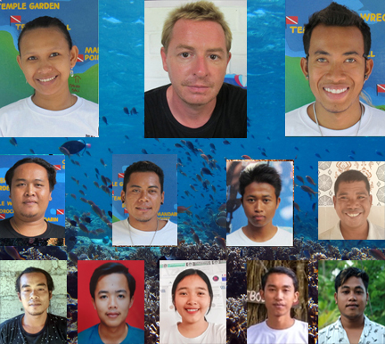 Putu, Dede sont en training pour divemaster . Yogi et Lapis sont nos helpers