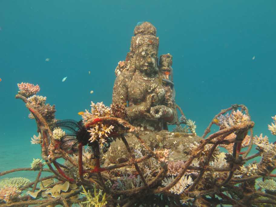 Depuis quelques années, un temple balinais a été coulé et gît a 30m de fond. Un site ou l'on peut voir des électrique shell. Environs 8' par bateau.